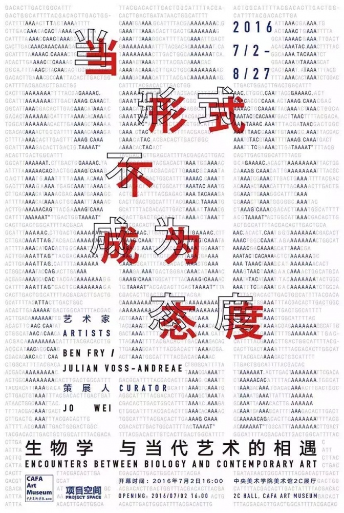 中央美术学院美术馆于2016年7月启动“项目空间:青年策展实验室”,邀请青年策展人结合多元学科进行策展实验。首个展览《当形式不成为态度》将于7月2日-8月27日举办,探讨以生物学为题材的的当代艺术创作。