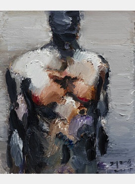 刘正勇的绘画就如根茎生长一样无拘无束,呈现自由而奔放的形式。尽管他聚焦于身体(或胸像,或躯干,或无器官身体),但其目标并不在于给予其以重新界定,而是清晰展现了身体语言和感性生命之间建立起的独特联系。在刘正勇看来,身体概念不是枯燥无味的、抽象的和封闭的,而是充满温情的、具体的和开放的。当活生生的身体与人的具体情境或心理征候而不是超验本质联系在一起时,它瞬即生发生命的活力。刘正勇把对身体的想像和表现看作是对另一种生命感官形式和聚合和生成。因此,身体是折射人的存在状态的精神景观。刘正勇在其作品中并不是要反映精神与肉体关系的哲学命题,而是旨在视觉语言上揭示其(诸如性别、愉快、焦虑、压抑、欲望)精神层次。因此,身体在图像政治上或表现或暗喻了非同寻常的指涉。刘正勇在这个意义上表现了身体的视觉美感,揭开了身体的话语秩序。可以说,他的绘画叙事不是基于图像的完整或完美性,而是恰恰选取图像的不完整或残缺。显然,这是由他的绘画语言所决定的,即承载着自由与控制、残缺与完整、释放与收敛之间所形成的视觉张力。为了能达到画面有足够可触的物质感,刘正勇主观增强了颜色的厚重感,尤其用排笔刷出一层一层的颜色,富有节奏的笔触在画面上尽现其肌理和质感。值得注意的是,他以几乎纯色的黑灰色调、偶尔涂有少许色彩的方法将身体刻划成略显“粗野”的雕塑般姿态(或站,或躺,或斜倚),弥漫着或庄严或哀伤的气息,如此这般被主观化的身体蕴育着或示意或暗示或隐喻的内涵,而充满曲折和变化的身体则折射出人的复杂精神状态--既让人感受到身体的坚强、震颤和力量,又让人感悟到身体的柔性、悸动和哀伤。刘正勇的绘画叙事不仅提供了新的认识维度,而且提示了新的感觉方式。他的绘画思考的不只是纯粹形式问题,而是与生命意识和生活体验相关的东西--让绘画永远处于体验和实验的过程。在这个意义上,他表现的身体彰显出如容器一样的动态过程,过程有时会统一化、主体化、或理性化。这些不同过程以具体(身体符号)的多样性而发挥作用,而多样性正是以身体可塑性作为驱动力。如此的绘画过程就是生成过程,具体依赖于线条与色域的相互交错和内外覆盖,一种不停的展开、交织、覆盖、再展。