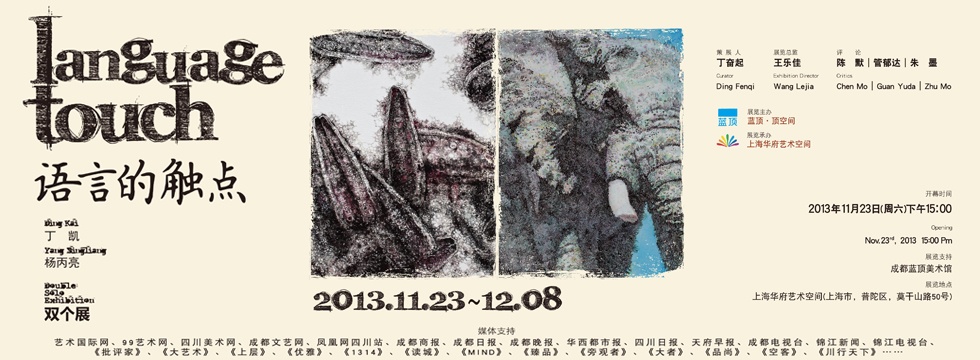 触点就像一个开关,它是温热的手指与理性逻辑的知识结构之间的一个链接,连通绘画基本语言单位与其所构成的表征系统的一个甬道。而语言的触点的意味,更加符合绘画观看经验的时间倒叙:它首先引发对“触点”的阅读,而后才将视线扩散至可视的图像层面。将一个链接观者与作品相互观看、审视、体验通道的开关作为出发点,依据绘画的语言要素(丁凯的癍点、杨丙亮的短线)和观看经验(可视——可读——可视)进行归纳和编排,也是将丁凯和杨丙亮的作品同处一隅展示的共时性原因。