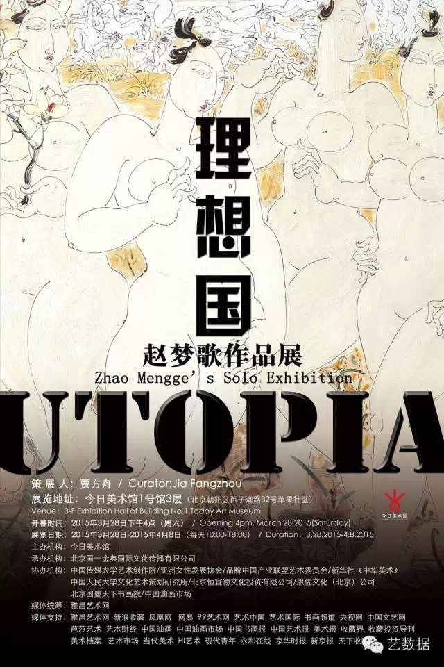 在她最新的这批作品中,赵梦歌让笔下的人物走出大自然,以主体的身份走到前台,来完成她的观念叙事,并借此探寻人类的精神困境和终极问题。其理念正在于她想在她的艺术中建构一个理想世界。这个理想世界,让我们不由联想到柏拉图的《理想国》、孔子的“大同世界”、陶渊明的“桃花源”、摩尔的《乌托邦》……延随着先贤们的这种信仰,赵梦歌借助她的画笔创造着自己的“理想国”,她的关注点已慢慢从先前对自身经验的描述,转向去构筑一个辉煌而宏大的精神王国,开始让自己的作品转向一种理想化的叙事,并伴随着更深层次的人性思考。