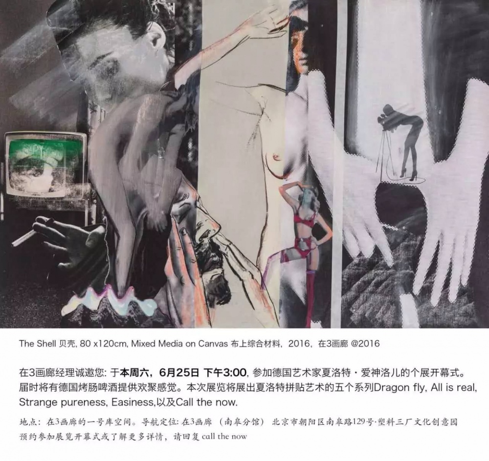 生活和工作在北京的德国艺术家夏洛特. 爱神洛儿(Charlotte Eschenlohr),主要以拼贴的艺术手法来表达她个人对当下世界的观察。这显然是一种再好不过的方式呢!拼贴,这种去中心化,解构和结构并存的表达方式,正好适宜于不带民族狭隘性的世界性的认知。