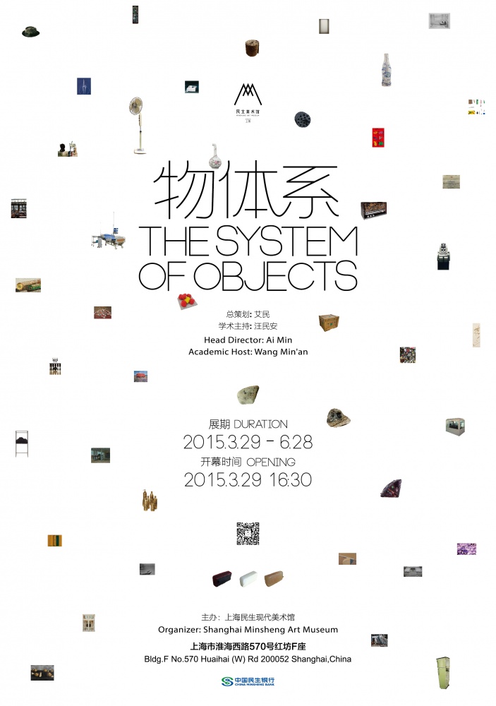 上海民生现代美术馆荣幸带来中国当代艺术群展“物体系”(The System of Objects)。展览将贯穿美术馆的一楼展厅,展出44位艺术家的绘画、雕塑、装置、录像、动画等多种媒介形式的作品。展览将于2015年3月29日开幕,持续至2015年6月28日。