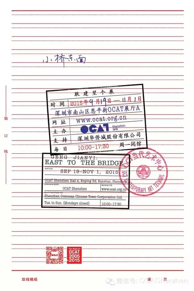 OCAT深圳馆将于2015年9月19日至11月1日举办 “小桥东面:耿建翌个展”,这也是OCAT十周年庆典的重点项目之一。“小桥东面”是一段关于艺术家个人经历的记忆故事,在一个无法预知的回溯叙事中, 它呈现了个体命运的可知与无知以及个人记忆的可能性和不可能性间的悖论境遇。
