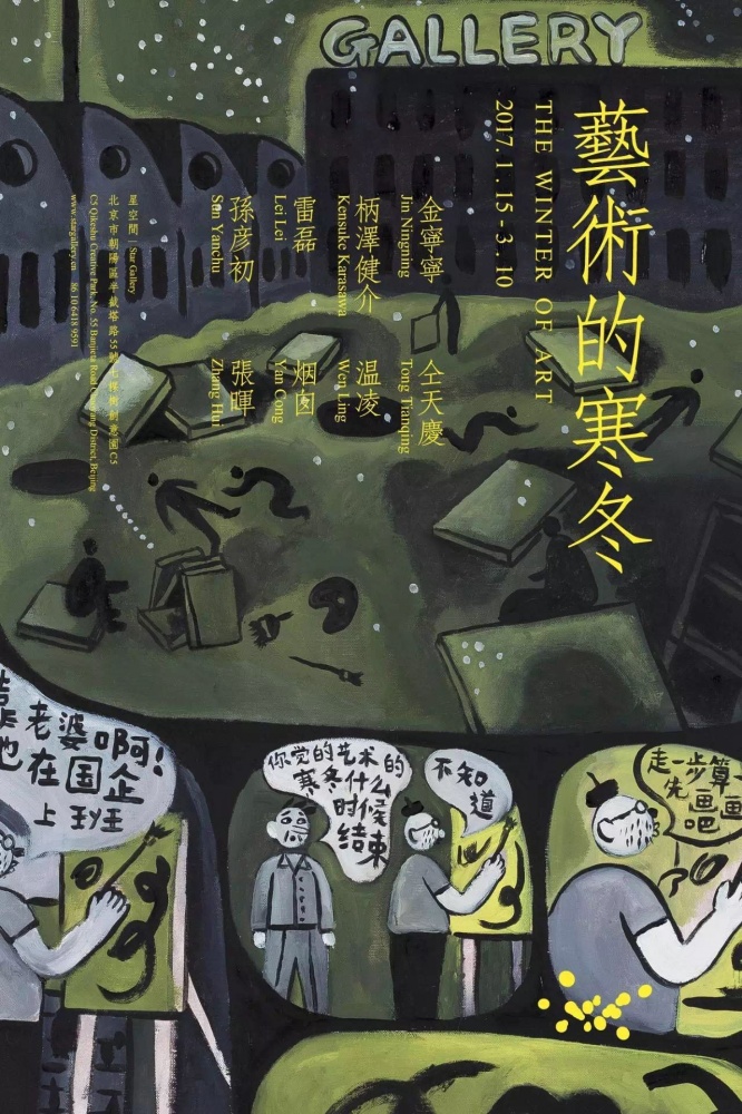 《艺术的寒冬》是烟囱在2016年完成的一幅作品,描述了一个画廊门前大雪纷飞、饿殍遍野的艺术梦魇,本周日(2017年1月15日),星空间将以这件作品为引子,开启猴年的最后一展。