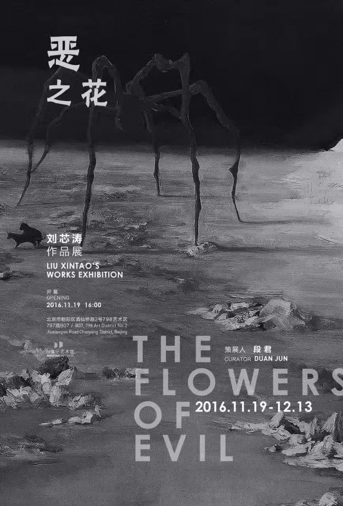 1857年,波德莱尔出版诗集《恶之花》,以城市为背景,前所未有地展现了人性之恶与社会之恶,如麻木、贪婪、悔恨、残忍、恐惧、懒惰等等,波德莱尔写道:“在生活那巨大的舞台后面,在深渊最黑暗的一角,我清楚地看到怪异的世界,而作为我自己的洞察力那心醉神迷的受害者,我一路拖着那咬着我的鞋子的毒蛇。”一个半世纪过去了,今人刘芯涛通过视觉的形式,也表现了一个怪异的世界,每个人都一路拖着咬着自己鞋子的那条毒蛇,愿我们看见它的存在,并能摆脱它的纠缠。