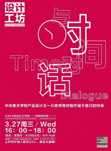 “设计时间、时间设计”在中央美术学院美术馆展览以来获得了学术界与社会各界观众的普遍认同与赞誉。为了配合展览,推广展览,让更多的观众关注展览,现公共教育部策划推出[CAFAM设计工坊]系列活动“与时间对话”,我们邀请了中央美术学院产品系教师王一川老师与设计学院家居专业研究生石丹彤为大家带来两堂生动活泼的设计工作坊,相信大家会在这里找到自己想学的东西,在与时间交流的同时体会钟表设计带给大家的乐趣。
