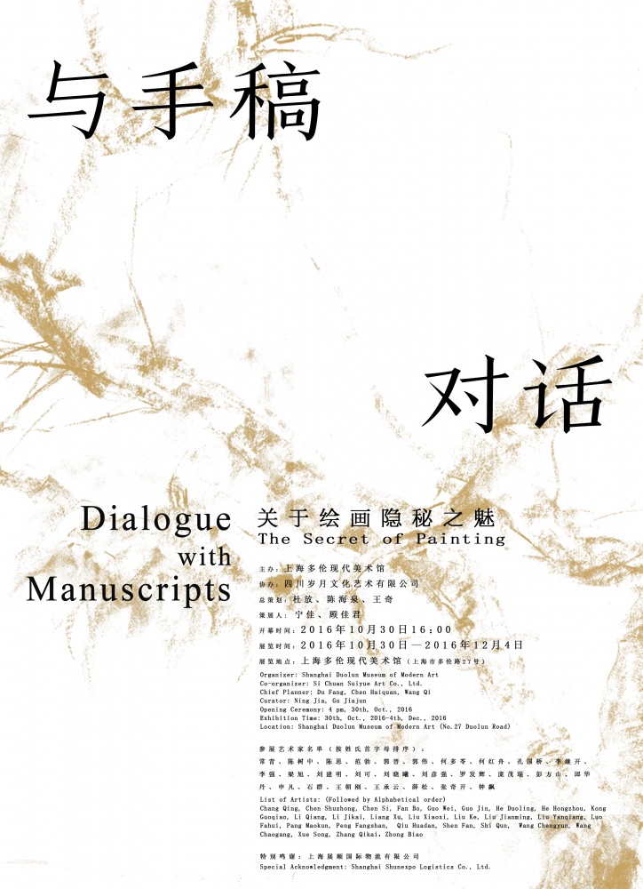 “与手稿对话——关于绘画隐秘之魅”将于2016年10月30日下午4时在上海多伦现代美术馆隆重开幕,本次展览由上海多伦现代美术馆主办,四川岁月文化艺术有限公司协办,将展出100余幅手稿和油画作品,参展艺术家年龄阶段跨越了1940至1980年代,既有1980年代就早已成名的画家,也有才初露锋芒的青年人,他们的作品和手稿,将向观众揭示绘画从远古至今仍然魅力无穷的奥秘。