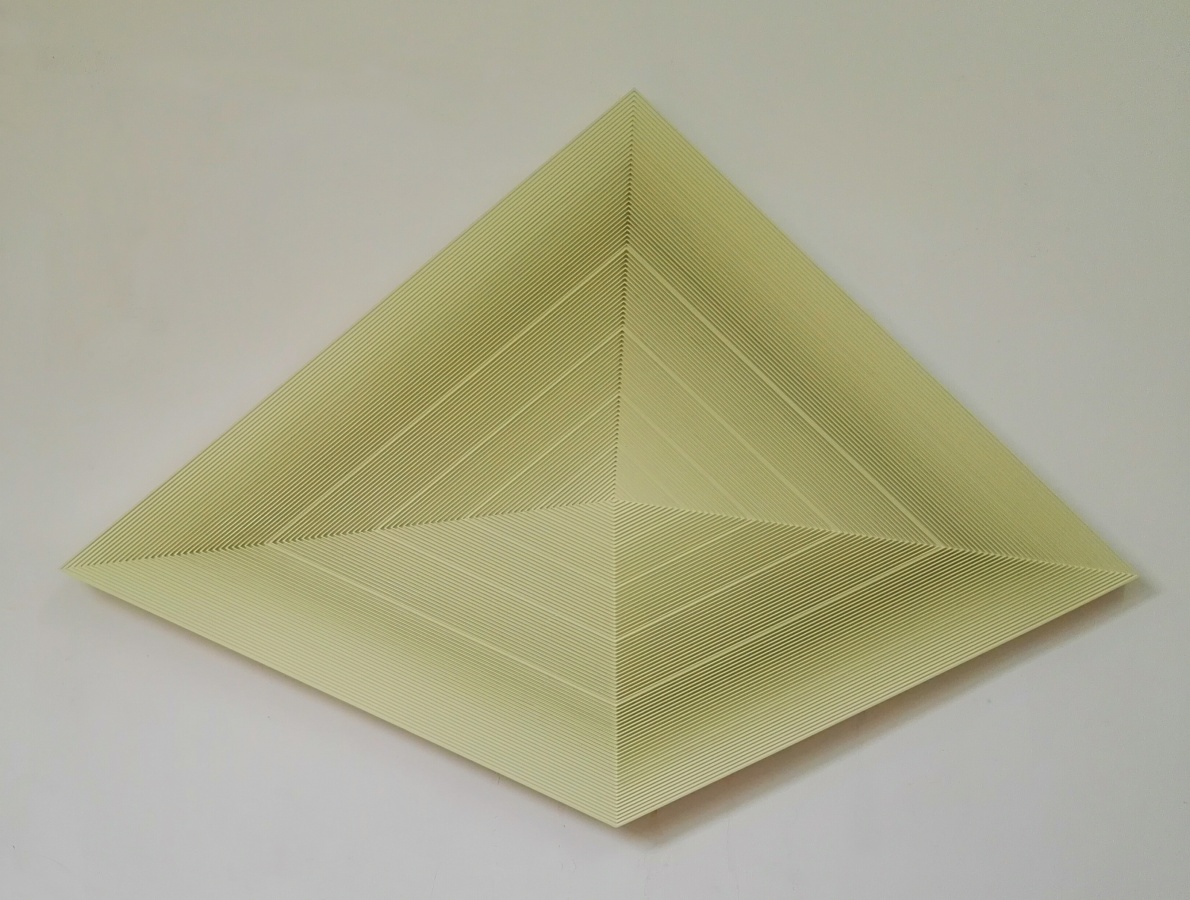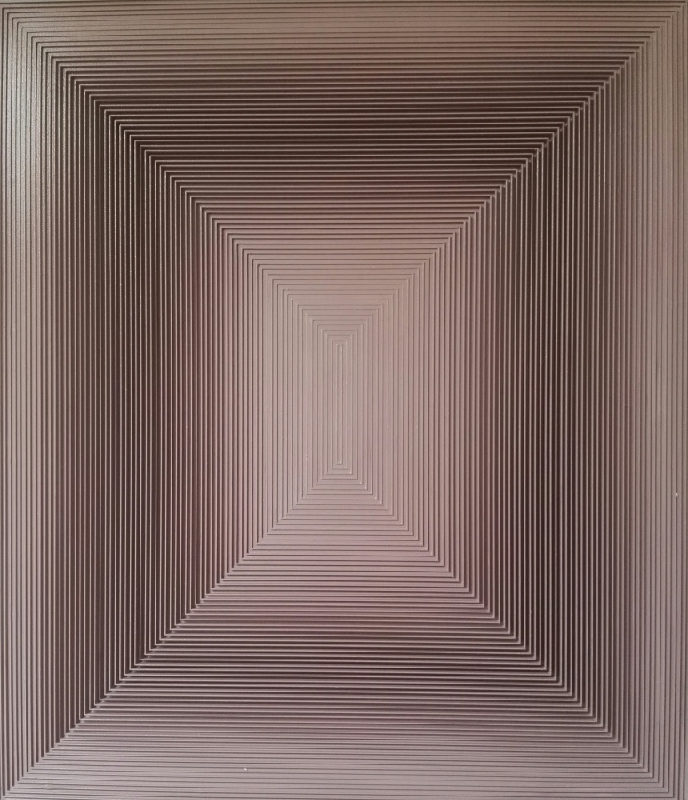 初看戈子馀的作品很容易让我们联想到关于空间维度的理论与学说,也可能会简单的判定他的作品就是欧普艺术的延续——制造了一种视错觉。然而,在戈子馀眼里他的创作是一个“同之又同”的过程,在道家学说里这是认识天地万物的方法,由本体的复制产生无穷的变化。他所创作的这些看似极具工业感的作品,一方面在实施前经过艺术家精密的计算,另一方面在实现的过程中却来自艺术家手作的打磨与上色。戈子馀以日常手感的经验控制着空间的维度,创作本身成了一种自我的修行,并且,他通过琢磨色彩在物性空间中自身的规律及属性,进而试图打破或无限度的模糊物性空间与虚拟空间的边界。在我看来,他用绘画与材料所构筑的空间使“无中生有”,不仅着力于强调作品与观看之间的关系,也折射出他对视觉元问题的思辨。