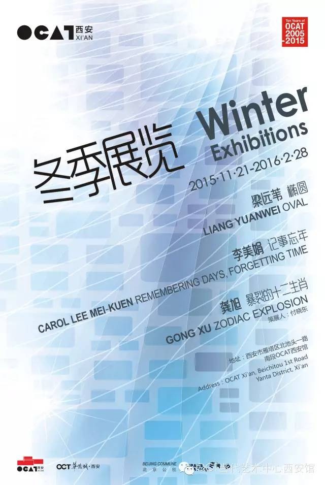 2015年11月21日至2016年2月28日OCAT西安馆将举办冬季展览,本次展览由三个项目组成,它们分别是:梁远苇——“椭圆”,李美娟——“记事忘年”以及龚旭——“暴裂的十二生肖,届时将在OCAT西安馆的三个空间分别呈现,欢迎大家届时前来参观。11月1日—11月20日期间,OCAT西安馆将闭馆进行“OCAT西安馆冬季展览”布展,冬季展览将于2015年11月21日下午4时开幕。