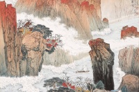 薛亮先生早年遍游祖国名山大川,少年时代苦临苦练历代名家大师名作经典,具有异于常人的采风阅历和深厚的传统功力,同时对西方的色彩语言有独特的理解和表达方式。早在八十年代后期,薛亮先生就独具慧眼从“书画同源”的创作理念中,发现了书法独特的结构美,而这种书法的结构美在薛亮之前,往往为画家所未知,仅仅停留在书法用笔概念之上。薛亮先生把这种独特的东方构成意识隐入到他作品的构图、造型中去,经画家对自然的解构和重新整合,营造了新的画面序列组合。他构思和作画过程自有家法,他并不着眼于表现一时一地的造化风物,而是任思绪自由驰骋,把映照自然的镜子打碎,然后按情境把它们重新拼成心灵的影像,并以多变的笔墨技巧,严密的章法结构借景抒情,创造出似真似幻、理想化、情感化的心象山水。这种心象山水来自于整合与重构,这当中既包含对自然物象的整合重构,也包含对传统语言的整合重构,而贯穿其始终的则是艺术观念的变革。他将传统山水的勾、皴、染、点基本技巧从旧有的形式格局中剥离出来,以现代人的自然观和新山水的审美观强化和规范它们的个体特征,赋山川草木以性灵,传今人之审美意趣。展读薛亮先生的作品,粗笔洒脱,细笔精工,和谐统一,会令人沉迷于那静穆、幽邃、清逸、纯净、多元化的审美意境,震惊于那奇特、神秘、非凡的结构张力,陶醉于那缜密、灵动、精到的笔墨功力,与现代人回归自然、远离喧嚣的心态相契合,与现代审美视觉求新求异的需要相适应,因此不期而然地具备了时代性和现代感。其前无古人的鲜明画风深深地打动并影响了一大批青年山水画家,为中国山水画的发展拓展了视野,探索出了一条新路。