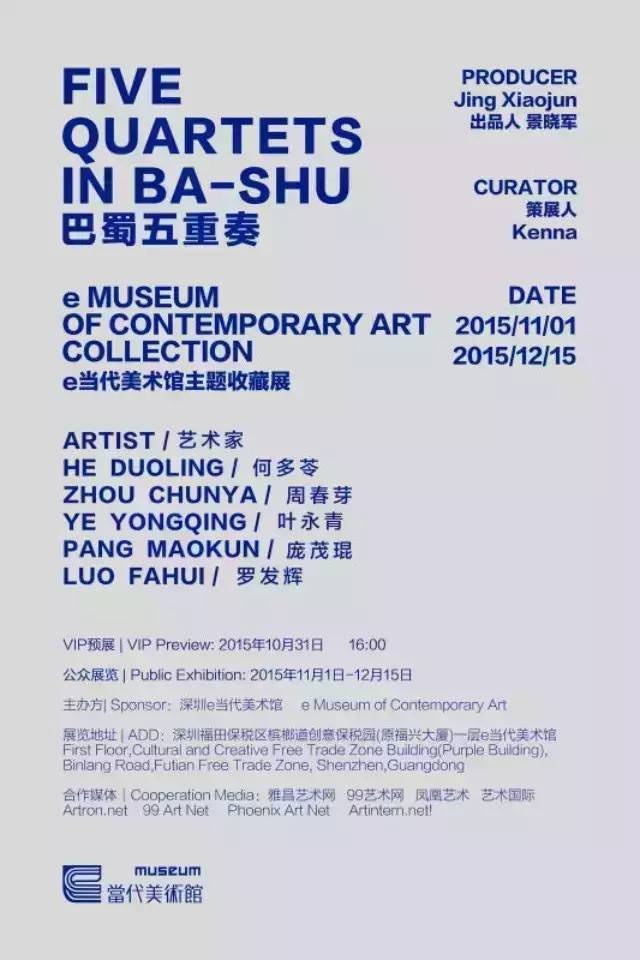 巴蜀文化聚合了南、北、东、西文化精粹,博大精深、特色鲜明,以南方丝绸之路为辐射力,形成了海纳百川的异域风情。而川美正是在这种巴蜀文化深厚底蕴下,八十年代初撩动起中国当代艺术发展的一支西南群体力量。这次展出的何多苓、周春芽、叶永青、庞荗琨、罗发辉五位艺术家就是其新巴蜀文化的代表性艺术家。他们的多年的实践与探索在中国当代美术史上占有独特的风格和地位,像一首“如歌的行板”在鸣响吟唱。