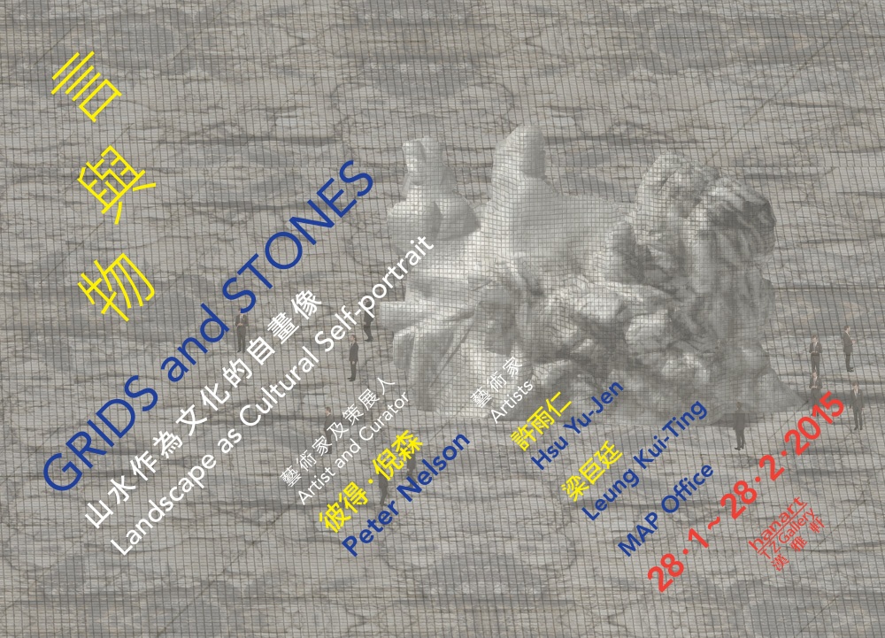 「言与物」,网格与石头。这是个关于风景(山水)的展览,受到热心人的对话催化而成。透过多元的文化背景,与包容不同的艺术角度,以致打开了分享意见的空间、鼓励被误译所激发的新想法、汇聚了交错的差异立场。
