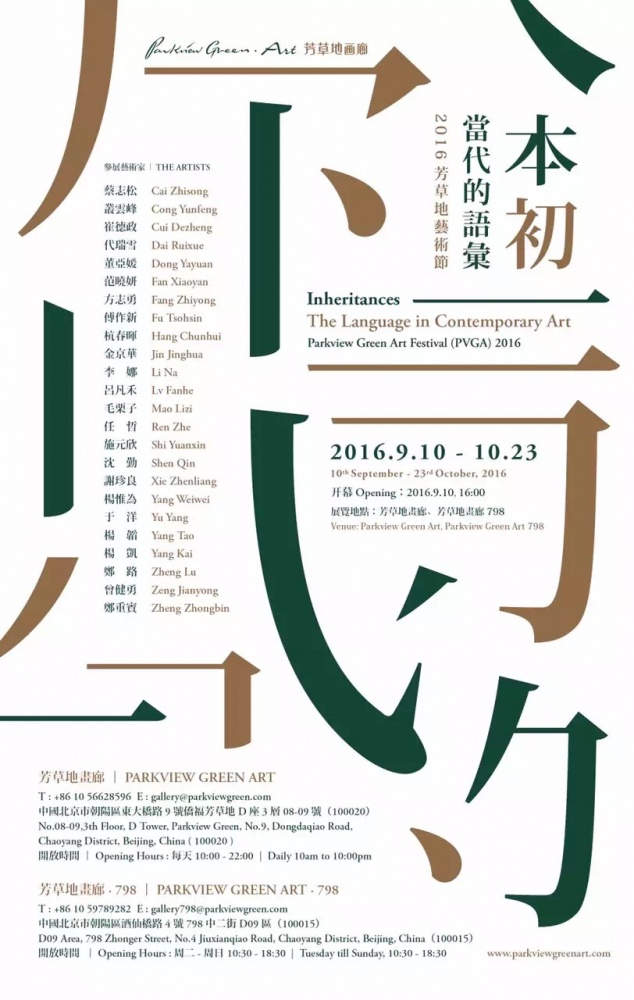芳草地画廊(北京市朝阳区东大桥路9号侨福芳草地B座LG2-K-14)、芳草地画廊·798(北京市朝阳区酒仙桥路4号798中二街D09)