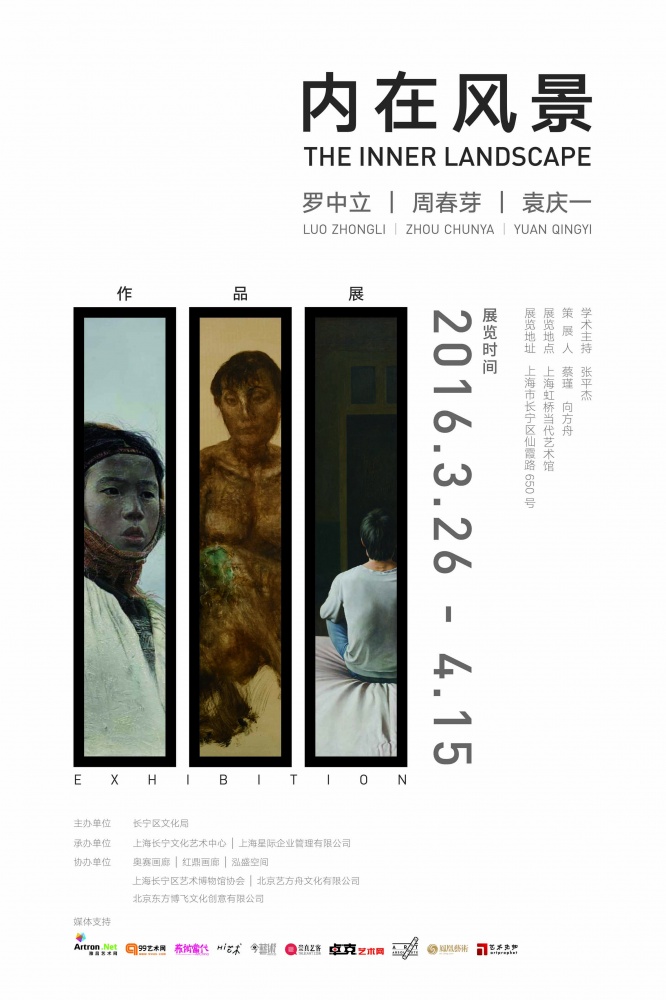 “内在风景—罗中立、周春芽、袁庆一作品展”将于2016年3月26日在上海虹桥当代艺术馆开幕。本次展览由长宁区文化局主办,上海长宁文化艺术中心、上海星际企业管理有限公司承办,奥赛画廊、红鼎画廊、泓盛空间、上海长宁区艺术博物馆协会、北京艺方舟文化有限公司、北京东方博飞文化创意有限公司协办。著名艺术评论家张平杰先生担任此次展览的学术主持。