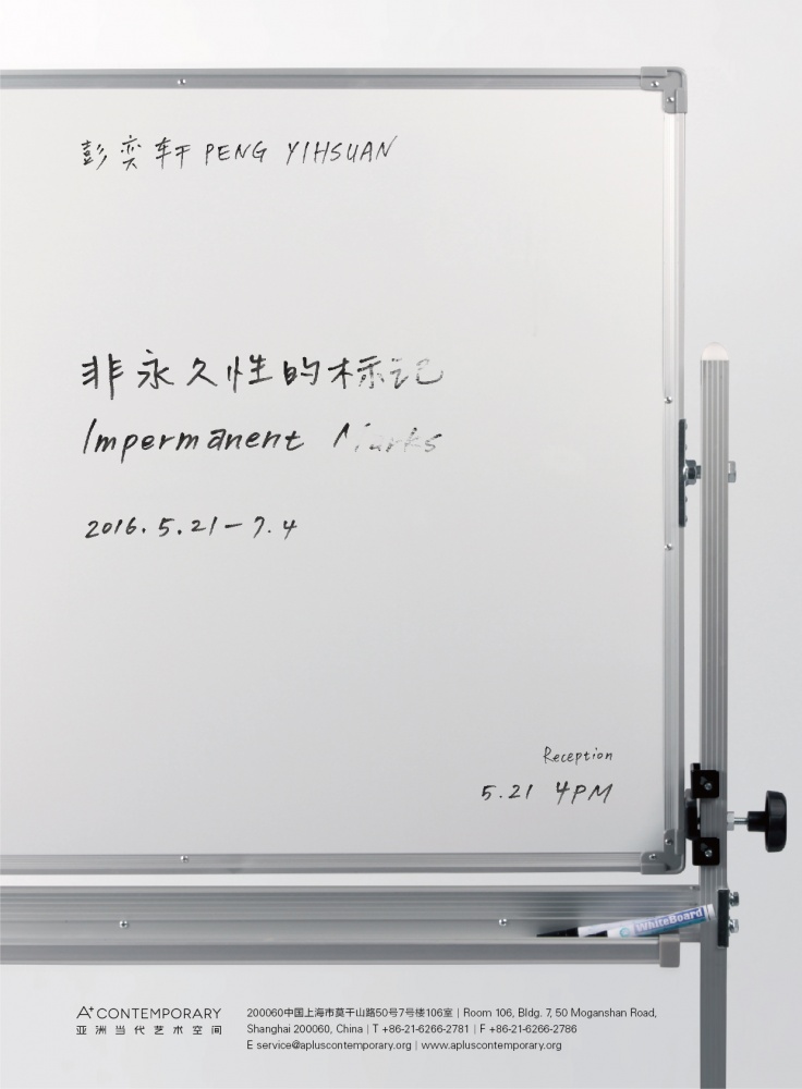 彭奕轩(生于1990年,中坜),2011年毕业于台北艺术大学美术系,目前就读于台南艺术大学造形研究所。现工作生活于台南。近年个展包括:非永久性的标记 (A+ Contemporary 亚洲当代艺术空间,上海,2016),CANVAS(想贰艺文空间,桃园,2015),悠闲的须须(齁空间,台南,2014),希望图像(台南艺术大学,台南,2013),千高台(台北艺术大学 南北画廊,台北,2011)。群展包括:台北美术奖(台北市立美术馆,台北,2015),Nice life台湾德国交流展(Kunsthochschule Kassel,卡塞尔,2015),高雄美术奖(高雄市立美术馆,高雄,2015),分心-南艺大造形所毕展(空场艺术聚落,台北,2014),转档:一种数据图像地理(TDAIC 数字艺术平台,台北,2014),让位/make placefor(加力画廊,台南,2013)。2015年入选台北美术奖及第三届三亚艺术季华宇青年奖。(来源:亚洲当代艺术空间)