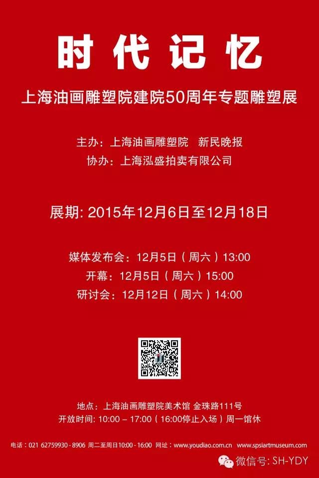 “时代记忆——上海油画雕塑院建院50周年专题雕塑展”将于2015年12月5日下午3点在上海油画雕塑院美术馆拉开帷幕。