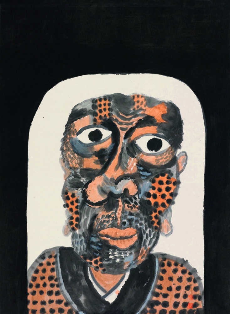 老十画鬼出神入化,曾经让我吃惊。数日不见,他会拿出一批“鬼画”让你看。这个题材让我不喜欢。但在这个“鬼话”满天的时代,“鬼画”是借“鬼”讽世骂人,因此他请我为文时,我写了篇“画鬼嘲人”,他满意。老十喜欢夜深人静时作画,茶一杯,烟一支,窗帘拉上,读着“二李”(李贺、李商隐)的诗,神与之远,含毫泼墨,万千感喟,奔赴腕下。就是白天,进到他那“阴山”背后的画室兼客厅,你也会觉得阴森森的。我一直觉得老十的世界里,阳光与阴郁并存,单纯与复杂同在,他的心理世界孤独桀傲,外表的平易与内在的孤寂混合成老十一人。