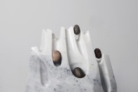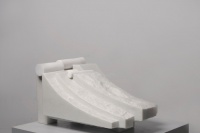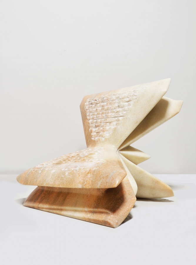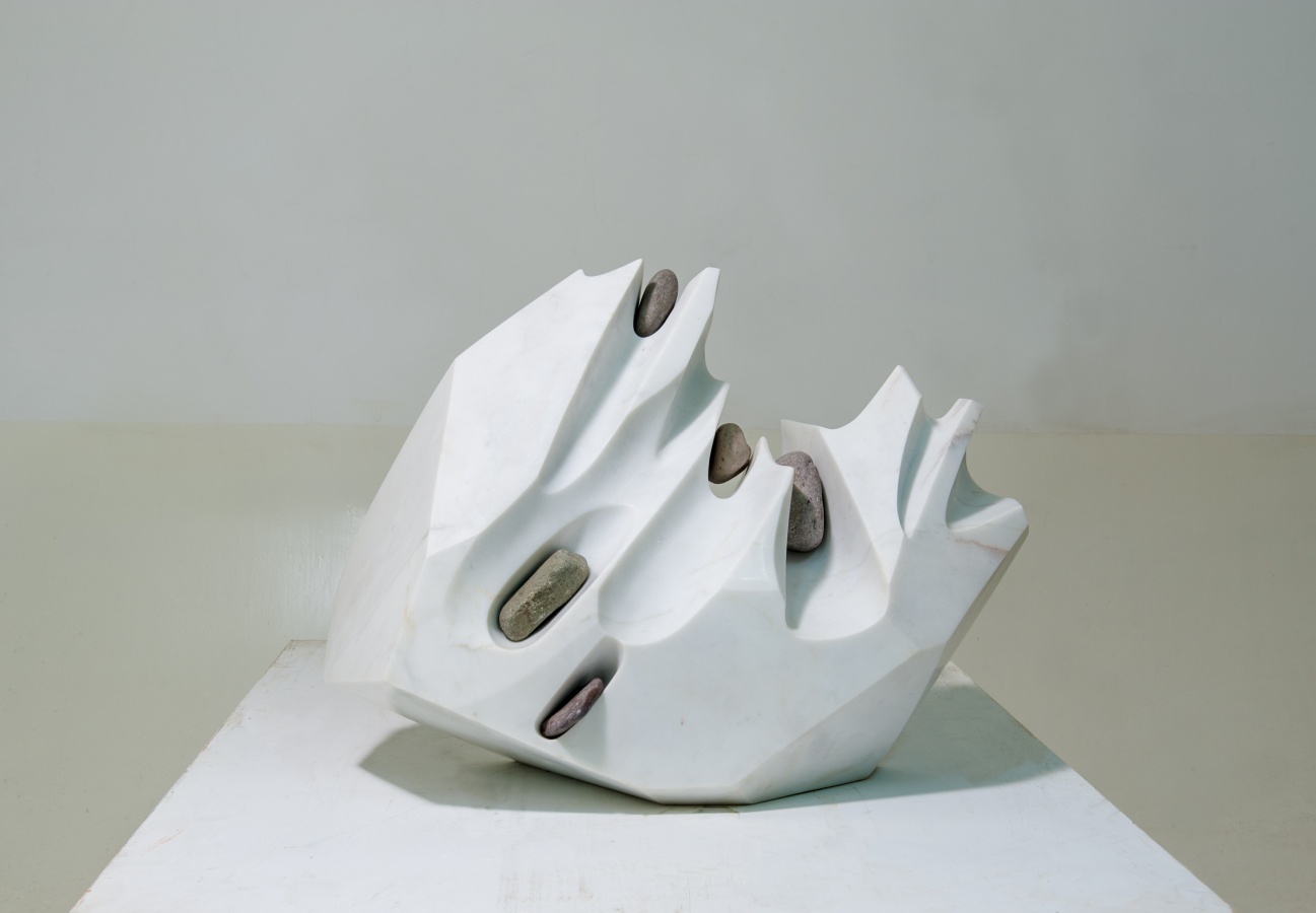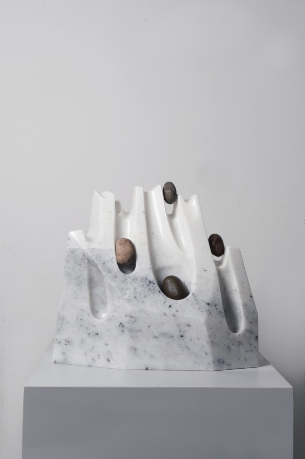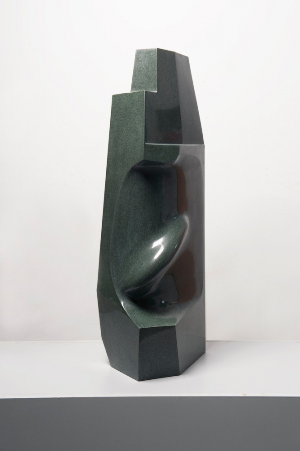 从日本回国后,我的创作材料由泡沫转化为石材。当我直接面对材料时,许多预料不到或懵懂不清的事情,奇迹般地一件件解决了。《栖息》、《撞击》就是在这个期间完成的。在抽象石雕创作中,运用自然环境中生成的原石,试图突破形式的统一,打破印象中既定的平衡和秩序,寻求一种动态的平衡。