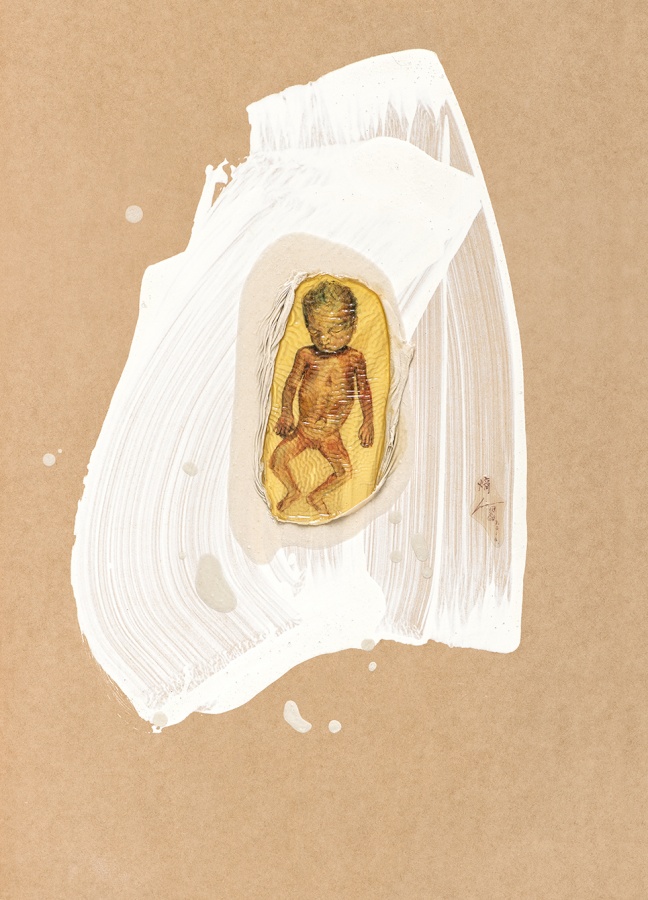上舍空间合作艺术家赵露受中方策展人王春辰和韩国策展人全慧延老师共同邀请参加此次展览,将携带油画作品及水墨作品参展,其中即有之前创造的作品也有为此次展览创作的新作。其中一幅参展作品《覆膜世界——Thinker No. 2 》通过婴儿的形象反应了母性的伟大。婴儿的诞生虽然过程艰辛,但蕴藏的新的生命和希望。而这份伟大却与慰安妇无缘,因为大多数的慰安妇都丧失了生育能力,由此更加凸显出生命的可贵和慰安妇的痛苦,她们被剥夺和摧残的不仅仅是自己的身体,还包括孕育后代的能力和对未来的期望。赵露运用惯用的油画与材料相结合的方式来表达,蕴含着更加丰富的信息,期待观众观赏时发掘。