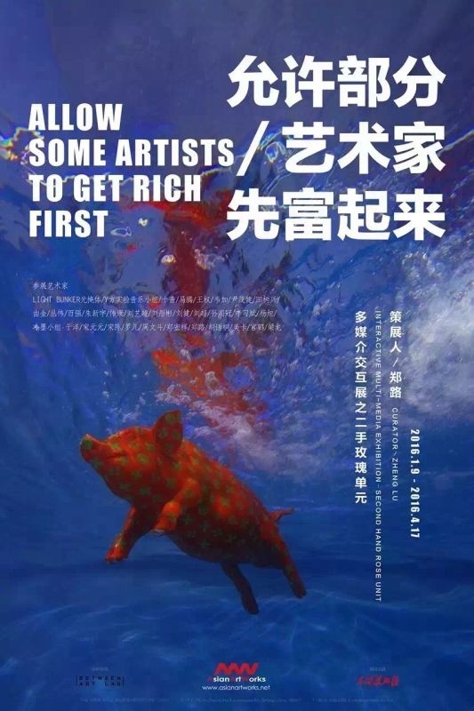 「允许部分艺术家先富起来」是继2014年“两岸三地首届华人摇滚展”,为摇滚服务品牌再次升级,所发起的实验性多媒介交互展。展览以二手玫瑰乐队为样本,艺术家郑路担任策展人,通过表现乐队个体文化领域的延伸,力求突破公众对于展览的传统解读,探索多次元的无限可能性。展览将二手玫瑰乐队的表面戏谑而内核严肃的文化表达再度重解。本展览将互动产生的设计、绘画、雕塑、多媒体装置汇于一个场域当中,使之能够成为一道引发公众思考与互动的桥梁。