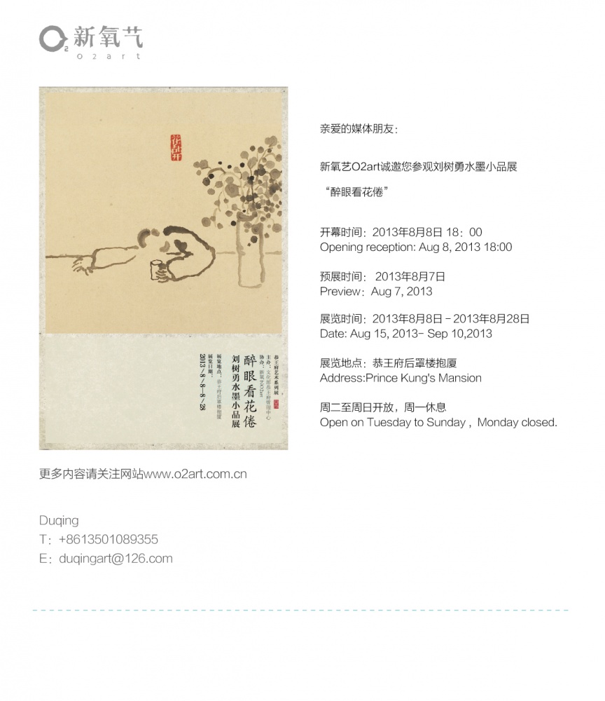 确实,世事人情的现实景观,总笼罩着他者的困扰。我们,时常在并非自己的要求下塑造自己。世界犹如棱镜折射中的魔幻光影,覆盖我们,并让我们遗忘个体存在。刘树勇对此甚为敏感,他的水墨也因此总试图在魔幻光影中游曳出自己的身影。在画一个酒醉圆桌上的人时,他于一侧记下洒脱的片刻之悟:“醉后卧听山中雨,梦里遥看云边花。”其中,所谓“山中雨”、“云边花”,正是世事人情的棱镜幻象。对之如醉后,观之如隔梦,恰是一种态度——带着一点“慵懒”,更透着一丝“骄傲”。于是,世事如花,画者如观。刘树勇带着距离的醉态,嘻嘻哈哈地把玩水墨,将一时、一刻的私家经验揉入迷幻的世事景观。