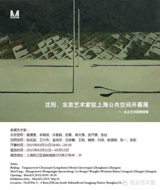名企艺术园区是上海新兴起的专业而活跃的艺术园区,致力于打造一个完整的当代艺术文化社区,丰富上海的当代艺术生态;目前已经有近50位艺术家个人工作室;除了个人工作室,园区还推出了极具创意的集体工作室模式,目前已经开设了北京艺术家公共空间、沈阳艺术家公共空间和杭州艺术家公共空间,用于这三个城市的艺术家来上海驻留创作、展示和交流,我们在各个空间中整理该地区艺术家的资料,建立一个艺术家、画廊、艺术机构、收藏家的交流平台,消解“由于信息不对等”给艺术界带来的困扰,为艺术工作者们提供一个快速有效的交流渠道,接下来我们还将陆续推出广东、四川、港台、欧美、开放空间(云南、福建、湖北、贵州、西安、南京...)等公共空间;此次展览是这两个空间启用的首展,艺术家也开始在这两个空间中驻留创作,欢迎有意加入我们园区和参与这边活动的朋友联系我们。