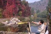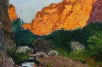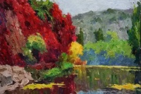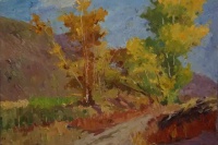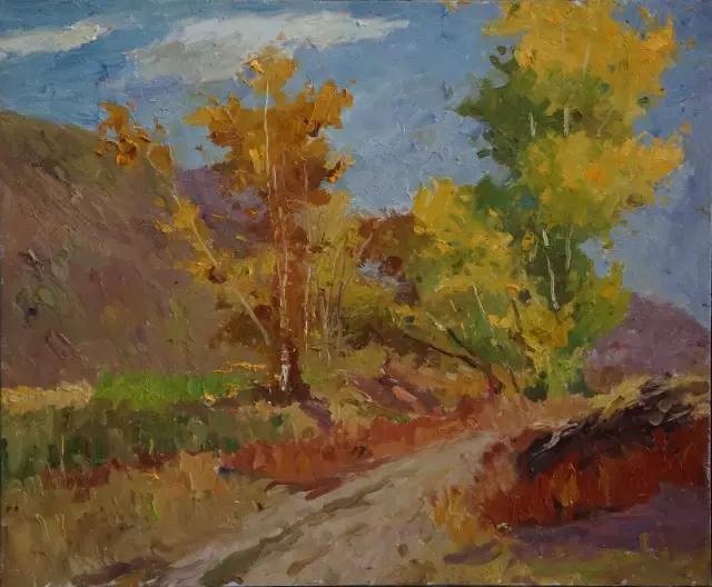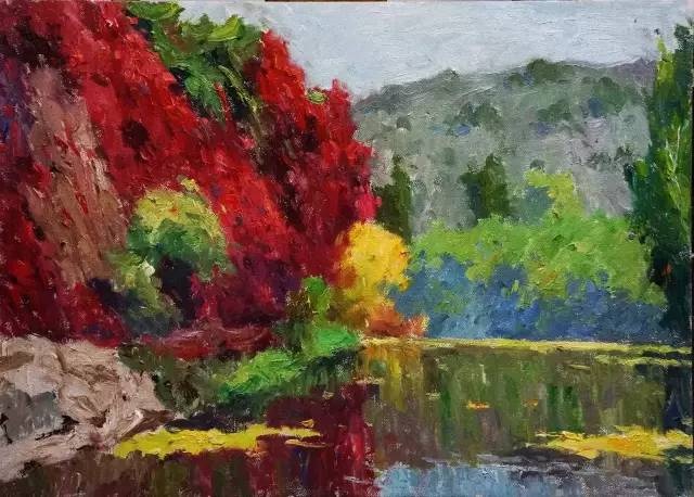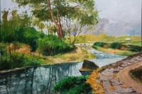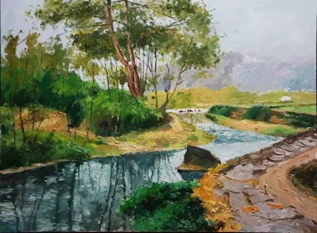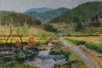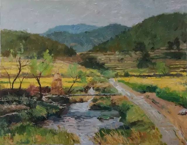 看到和想着易英的画,我体味到,他亲近自然的心灵和目光很可能连接着他在湖南乡村当知青的体验。通往山坳的小路、透过丛林的阳光、一片翻犁过的沃土、一弯浅浅的溪流,他画中的景物都似乎是他早已爱过并且在心里不断闪现的对象,他用一往情深的“重温”这种方式感觉它们,将遥远的乡情寄住在笔下,使画中的形象浸染着一份浓郁的情怀。我这样“解读”他的画,不是为了抬高他的画作的身价,而是希望每一个看到他的作品的人,都能从其中领悟一位心诚者的手笔和一份手笔下的真诚。
