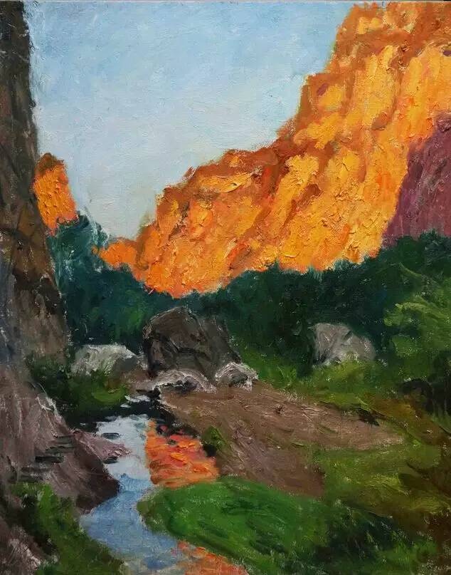 当然,易英的画,更是他作为易英教授有眼光、有修养的结果。他研究西方美术史论,是我国在西方美术史论研究上富有作为的中年学着,尤其在西方艺术史方法的研究上堪称一位有建树的名家;与此同时,他也长期进行中国当代艺术的批评,撰写有大量的画家研究和当代美术的文化研究。在这些专业研究的过程中,他踏访欧洲,考察各国著名美术博物馆,对西方绘画的经典作品稔熟于心。从英国的风景画到德国的风景画,从风景画的印象派到风景画的现代派,对西方风景绘画研究上作有许多专论;他也与中国当代许多画得好的画家交往甚密,在艺术批评上属于注重作品“本体”研究的一派。这些看画、读画和分析绘画的学术工作,显然丰富了他的视觉感悟,潜移默化地在他的绘画中起着作用。古人尝云:“熟读唐诗三百首,不会作诗也会吟”,依他长期研究中外古今绘画的积累,他从“吟”到“作”,“作”而出手不凡,就是自然而然的了。这使得他的作品不仅在内容上从心所得,在色彩、色调、笔意上也依心所发。他的色彩品质与他画的内容是相关的,都属于朴素一格,他的用笔风格也同样敦实严谨,点染勾划都顺从造型的需要。他对细节的认真刻划塑造,使他的作品富有充实的面貌,他对光感的注重乃至有意义的强调,使他的作品洋溢着蓬勃的光芒。随着他不停地画,他在造型个色彩上都更加得心应手了,有的写生一气呵成就是一副佳作,有的在记录素材后进行作式的整理,也保留了即景即兴的感觉。总而言之,在一个史论家的易英之后,一个画家的易英逐步成形了。