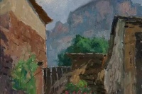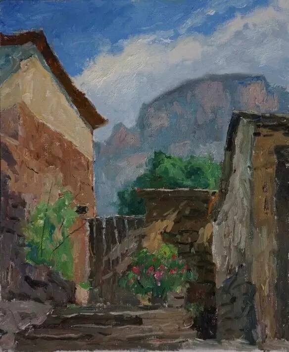 易英的勤奋在美术学院人到中年的一代人里是出了名的,读书、译著、写作、讲课与工作,他事事做得投入认真,精细周到,持之以恒。除此之外,他每逢节假,就或与画家近友结伴、或带学子晚生前往城外或外地写生,类似京郊黄花城、爨底下那些美术学院写生的老基地,他是去了多次的,每次都带回来不少作品。这种坚持显然是接续他学画经历的功课,也是满足钟情于绘画那种“内在需求”的结果。正因为他不谋“画家”之名。更无以绘画成名之意,他倒是画得没有包袱,只作为自己的真正爱好。大凡爱好的,就是自然的,因为是自然的,于是是朴素的。他的画就像一位行吟在大自然山村原野坡地以及溪流旁畔的诗人,所摄取的都是散发着朴素光彩的花草。面对自然风景,他所采取的方式是道地的写生,写景物景色的固有生态,捕捉它们的生机与生气。从作品的内容看,他的目光大凡驻落在山乡田野的一角,取景集中,传连出虔诚凝神的作画状态。所画的景色既含有乡村的烟火人家气息,有透溢出远离喧嚣的清新意境,表现出对于所画对象亲切的倾心。