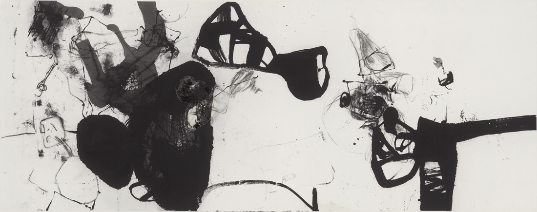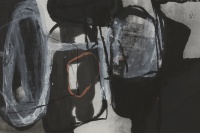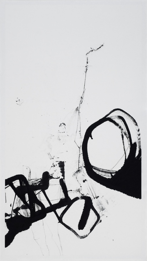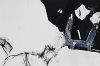 朱岚2015年的每一件作品都有一个明确的名字,之前的作品多以无题命名。这次展览主题——语。很显然,她是要诉说的,虽话不多,却直指人心。从80年代末开始画水墨抽象到现在已有20多年,创作对她来讲是不断的认知自己潜力和感受周遭生活的记录过程。抽象是用不具体的形象记录那种清晰但不可言喻的具体感受,这种无边界性和不确定性,使她发现了里面的真实之光,这种真实让她可以保持一个自由的状态,使之无阻碍的在这里让时间与心交织,这也正是她需要达到的理想状态。