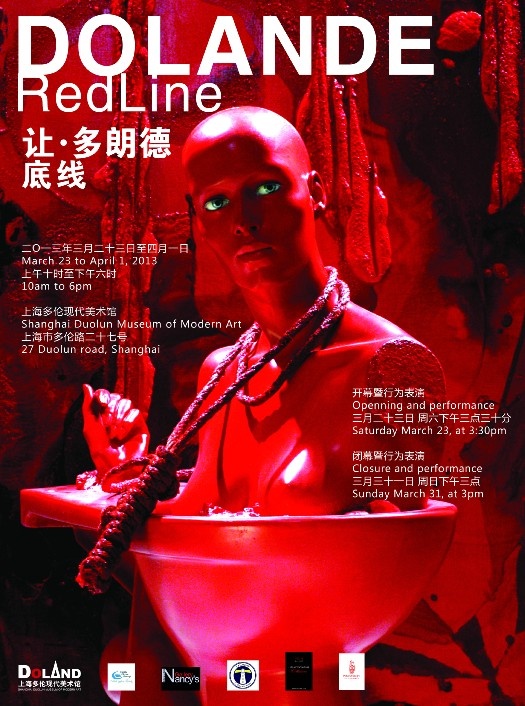 由上海多伦现代美术馆主办的法国艺术家让•多朗德的作品展“底线”RedLine将于2013年3月23日-4月1日在上海多伦现代美术馆举行。此次展览将展示让•多朗德所创作的84件装置、绘画作品及行为表演。