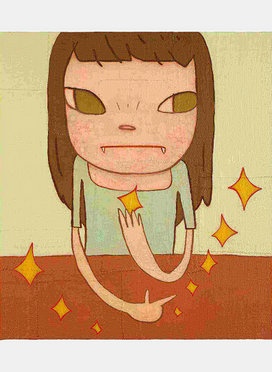 奈良美智的绘画其实可以被看做是艺术家自身与童年时期的持续对话,他通过绘画来表达他对于成人世界的反叛情绪,那些看似安静默然但却在企图求救的暗示,则是艺术家自身与社会间所碰撞与挣扎出的情感表达,一种似而喧嚣的孤独情绪。