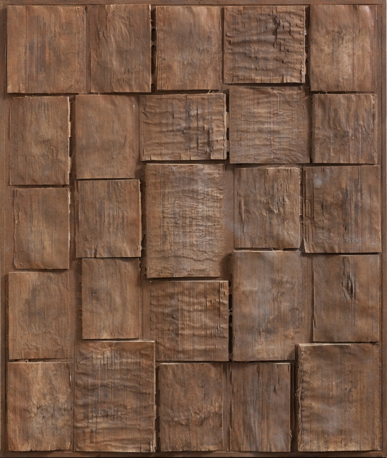 进入电写时代,面对现代性“书”的消失,有着对书册最后的挽留方式吗?当然不是说不去读书,而是让书册在现代性之中的品质有着新的经验。在郁涛手上,图书乃是一堆堆,一册册,并置起来,但如同废墟一般。“书”被还原到其“本”的物质性上,书本之本,就是有其体积,有着自身材质的独立性。书也有着体积块面,郁涛以切割方式,裁切书册,反复裁切,保留了书的物质形态,纸张的物性,以及切割后的平面形态。也保留了书的生产原理,但不是美术史已有的方式。在色调上,保持古雅或浑古,这与郁涛长期玩赏古玩有关。