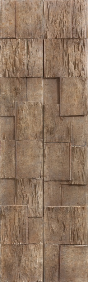 第一批作品,斜切面的色彩错叠,形成立体雕塑性的装置。郁涛采取斜切的方式处理收集起来的图册、书册、画册,等等,不止一本与一种,而是几种不同书册,分开处理后,同时并置在平面上,书册凸凹起伏不平,有着不同的表情。充分上色后,色泽幽暗,宛若考古挖掘之物,这是以新的目光重新打开图册,不是为了阅读,因为切开的斜面还形成了丰富的条状色带,完整书册所不可能具有的切面得以显露出来。切割形成了有一定厚度与倾斜度的块状:保留了书本的块状,以斜切与堆砌形成了块状对比,看似抽象性的绘画装置。
