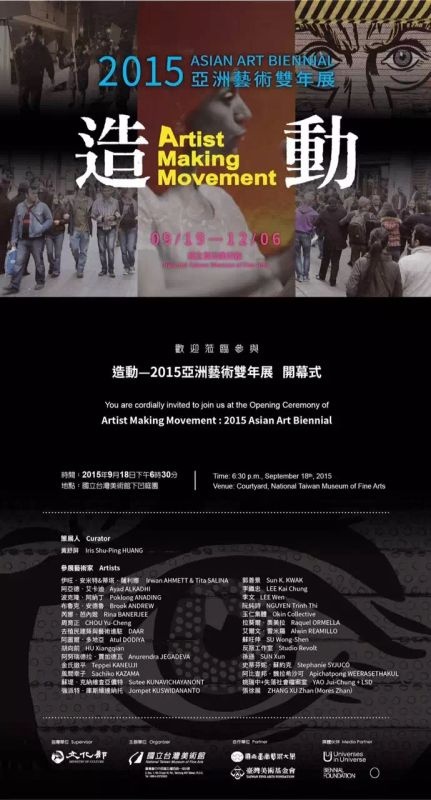 「造动」(Artist Making Movement)如题旨所示:艺术家的「创造性」及「能动性」,代表着亚洲当代艺术脱离过去被定义的静态名词转向了更积极作为的动词型态。这个进行式象征着亚洲当代文化的活性机能和艺术实践的态度,积极介入亚洲历史的新页创造。造动,作为一种开启、扭转、重组及建构的可能,从原来的位置移动出来,而形成一种打开空间、松动结构和开启缝隙的实践路径。在这样的创作状态和趋向中,艺术家角色所定义的创造性,不仅是艺术概念和美学对象的创造,更反映在他/她们作为一种行动媒介,在创造的过程中介入社会多种关系之中,形成中介及转化的功能,意图从个人的创造过程和社会环境发生互动,触发讨论,并希望从艺术行为和创造媒介的两种方式,与社会的动态发展产生密切的共构关联。而今日的亚洲,也正是在这种多边关系的建构与重组中形成当下的亚洲现实。
