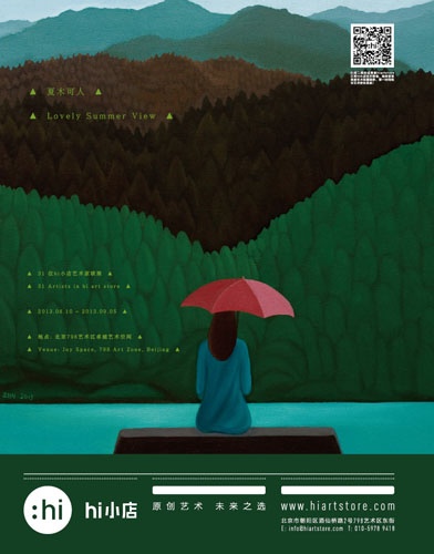 2013年hi小店夏季群展之收关展开幕正值三伏。《说文》有语,“佳木秀而繁阴为夏”,故定名“夏木可人”。有听闻宋人遇三伏炎暑,喜择“湖中画舫,俱舣堤边,纳凉避暑,恣眠柳影,饱挹荷香,散发披襟,浮瓜沉李,或酌酒以狂歌,或围棋而垂钓,游情寓意,不一而足”,不禁浮想联翩,翻阅hi小店网站,观喜作风景者亦不在少数,便攒一展,以画中风景为君消暑。