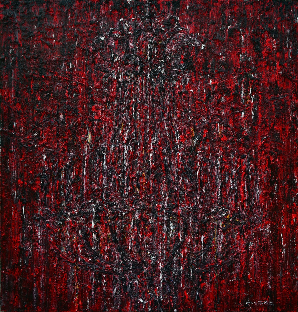 张振学最近不停的在画镜子、吊灯、游乐场的机器以及宏大华丽的场景。他说,因为镜子里有一个迷离的世界,吊灯散发出最美而易碎的光芒,游乐场是快乐的临时生息地,而越宏大华丽的场景就越显虚无。