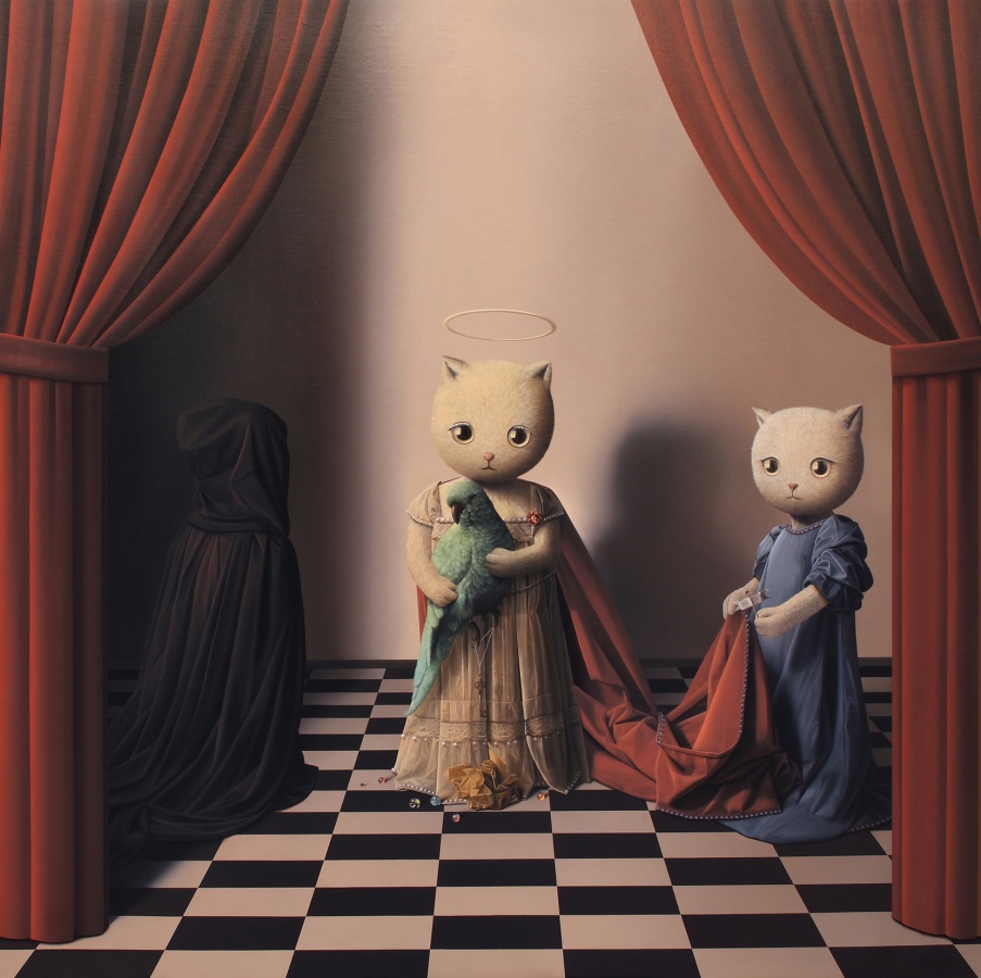 三位艺术家无论是张凯的充满着古典唯美气息的“猫”系列、刘政昕的天然景观 “画树皮”系列,还是王豪的沉浸于东方文化的极简主义抽象作品。虽然艺术表现风格迥异,但基点相同,艺术家都把个体在历时中展开的遭遇和选择最真实、最直接的生命感受呈现出来。而作品中意向的注入和情思的投射,以开放的意图更广泛的接受了不同的意义。价值和情感的融合建构了一种美的成果,向我们说明了一种思想之外的东西,让观者从作品中感受到一种深刻的生命体验。