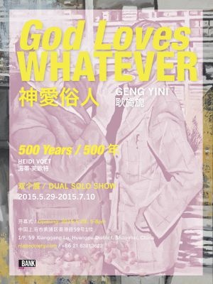 耿旖旎延续她的坏女孩姿态,运用综合媒介手段呈现主题略显敏感的关于宗教与信仰的新展览。她富有表现力的大型绘画并置和叠加来自不同文化与时期的图像,如同荒诞的狂欢。耿旖旎汲取来自全球范围的图像灵感来源,将粗鄙、庸俗、悲惨的俗人表现为上帝的选民,综合社会现实主义、涂鸦和表现主义技巧的画面饱含污秽的光辉。耿旖旎绘画中精神分裂般的态度也延续到了她的装置和影像中,影像表现了她的祖母和朋友们朗诵、错误朗诵《圣经》段落、吃水果和唱颂歌的场景。