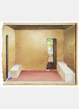 在艺术家的许多作品中,空间如庭院、室内、公园与花园等展现了虚幻的场域和神秘的故事。Weischer对其所描绘的空间详细地进行探索,打破任何表象的和谐,揭露藏于表象下的混乱。艺术家略去具象形式的任何踪迹,促使观众在精神上占据画中的空间。虽然省略了具体的形象,他描绘& #30340;空间却填满了人物存在的痕迹,包括各种能够推测个人喜好的摆设和装饰。Weischer拼贴式的构图方法突出了他所采用的强行透视法,挑战观者感知空间的方式。他采用不同的视角和空间片段中断布满图案的墙壁,画面跨越逻辑的边界。