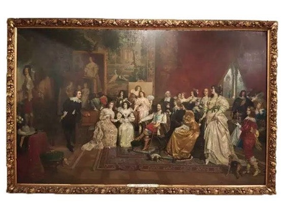 所有作品中,其中一幅尺寸201 x318巨大的宫廷画惹人注目,这幅面在1901年首次展出时曾被称为“比利时近代最杰出的油画”,它的作者Eugene Siberdt正是世界巨匠梵高曾经的老师,画作描述了1632年,国王查理一世到著名画家Anthony·van·Dyck?的工作室,查看即将完成的肖像情景。