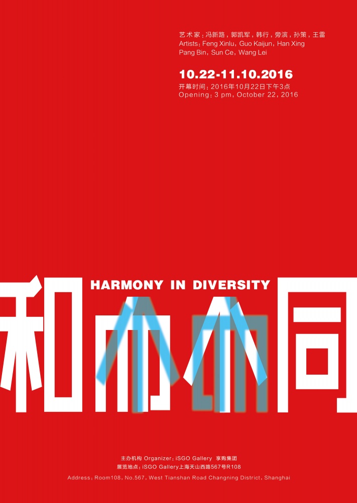 “和而不同”是中国文化和中国哲学的重要范畴。“和”即统一,和谐,它是抽象的、内在的;“不同”是具体的、外在的。只有容“不同”,才能达到“和”的境界。金木水火土相合生成万物,酸甜苦辣咸相生组成人间美味。也就是说,多种因素相互配合、协调组成新的事物才能达到理想的效果。“和而不同”也要求我们在坚持原则的基础上,承认、包容乃至尊重差异,以达到共存共荣。“求同存异,和谐发展”无疑是当今世界文化发展的主旋律,本次展览我们选择六位艺术家的系列作品进行展示。虽然他们的作品面貌各有不同,但在各自的领域都达到了相当高的高度,可谓“大道合一”。