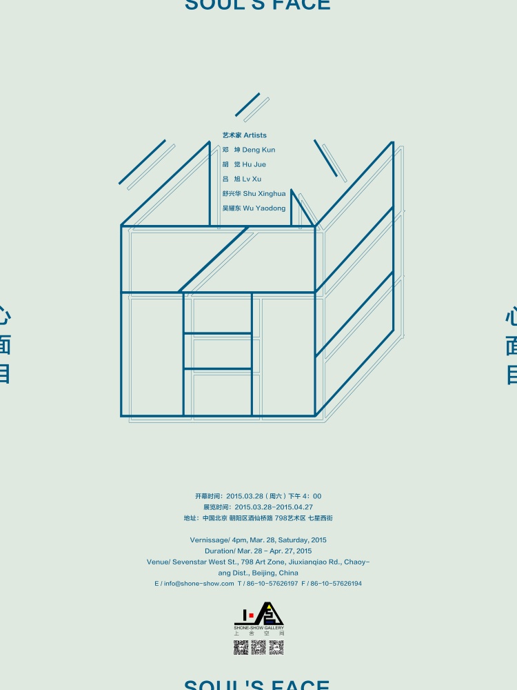 上舍空间于2015年3月28日推出“心面目”展览,将展出邓坤、胡觉、吕旭、舒兴华、吴耀东五位当代艺术家的作品。