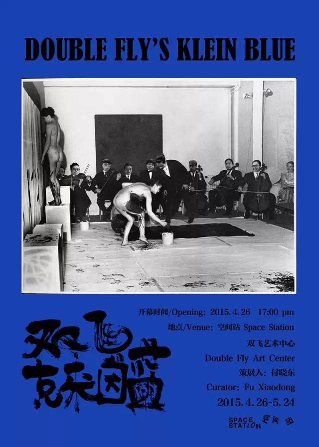 1960年3月9日,在巴黎国际当代艺术会场,伊夫克莱因用国际克莱因蓝涂抹在三位女性身上,并在墙壁和地面的画布上翻滚拖拉。2015年4月26日,双飞艺术中心将在北京空间站重现这一历史经典时刻的现场。历史经过了55年,克莱因所崇尚的“空灵宇宙”的精神火种,将再次复活,观众可以现场体验到双飞重演玄虚艺术家自投净空纵身一跃的刹那,使虚渺而复杂的精神世界悬浮于宇宙太空之中。克莱因用最单纯的颜色和虚空唤起心灵对非物质性强烈的感知能力,是在蔷薇十字会和日本东方禅影响下形成的思想体系。克莱因说:“借助色彩,我体会到一种与空间同化的感觉,我是真正自由的。”克莱因作为行为艺术、观念艺术鼻祖,双飞将用“活体”画笔展开此次跨越时空的神圣朝拜的对话,进入纯粹精神性的观念领域。