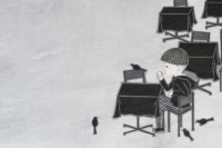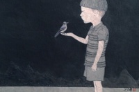 不过,虽然画面中的儿童以自己的儿子为模特,但同时也寄托了艺术家对自己童年的回想。作为一个从农村走进城市,并又走上艺术道路的青年,朱小坤的人生和艺术道路并不是一帆风顺的。中国的城市化进程和消费主义文化发展印刻在一代人身上的痕迹,在朱小坤的身上也有着明显的印记。与对政治和大文化感兴趣的上一代艺术家不同,他们更关心自己的生活,更在意周围环境的变化。他们也更愿意将自己能够切肤体会到的感想描述到自己的创作中。或许这样的感受不够伟大和雄浑,但它却是真实存在的,这也是为什么我们总能够感受到画面中那个乖顺、安静、沉郁的少年不仅仅是作为模特的孩子,也是艺术家本人的化身。