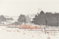 画家李诗文近年来的油画创作也把田园作为了艺术表现的母题,但与传统文人画家强调隐逸意识不同,他常常是在借田园抒发一种斩不断、理还乱、说不清、道不明的乡愁。不过,这绝不是指一般意义上的乡愁。按我的理解,其一方面是指艺术家对我们文化传统和生命之根的深深眷恋;另一方面是想借此对当下都市文化进行深刻的反思。树高千丈,落叶归根。在外来文化、网络文化、流行文化与消费文化的大势冲击下,在喧嚣忙碌的无情吞噬下,画家的作品就像一副副镇静剂,可以帮助我们静观体悟,直探本心,取得精神上的巨大平衡。