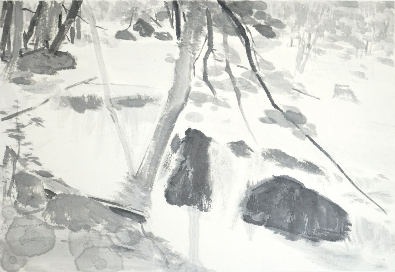 李诗文的绘画创作出入中国传统水墨和西方油画双重的文化传统,却能够结合自身当下的生存体验,形成清新、空灵、独具一格的表达。此次展出的二十余件油画和水墨作品,也是李诗文近两年来 “山水画传统与当代风景表现” 课题研究的一次成果呈现。