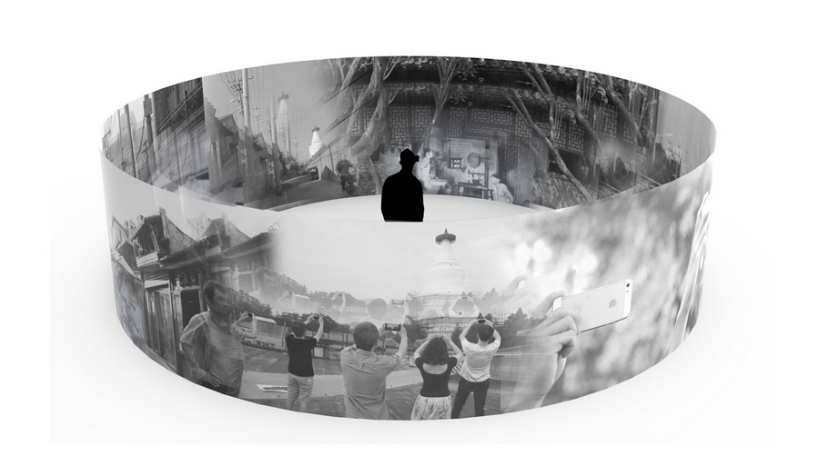 本次展览的一个亮点是中央美术学院数码工作室主任费俊教授和艺术家李心路借助VR高科技作为媒介创作的作品,这件作品曾入选第15届威尼斯国际建筑双年展活动,观众可以戴在VR眼镜在虚拟世界越过未知的障碍,还可以两人互动寻找对方的痕迹,甚至穿越回老北京,感受胡同里的生活。艺术家通过VR在展示空间进行“挪移,叠加,植入”三个动作。它会通过对时间的抻拉和挤压, 甚至是对视听感官不平衡的强行扭曲,将观众引入一个听觉主导的情境中去。虚拟现实技术 ( VR ) 恰好提供了这样的一个空间: 感官真空,它能让观者在“到哪里体验“和”什么体验”中,形成感官的体验错位。