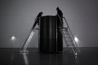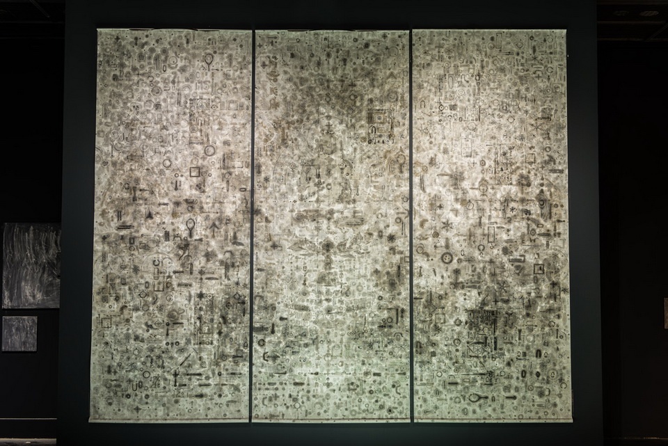 本次展览,陈文令带来2012年创作的《超验的方舟》。这是一座巨大的、带有浓郁科幻色彩的不锈钢雕塑。《超验的方舟》船舱内部装有一个人心脏跳动的声音装置,并配置灯光与心跳声同步闪烁,船舱的两层甲板上装有几百只各种动物模型,“在场”观众能在作品中穿行互动,形成别有意味的异度风景。在人类精神失语的今天,在方舟上人们寻求救赎,并寻找各种可能的救赎途径,是人类的一种本能,然而对当下生存图景的焦虑却是无法摆脱的梦魇。