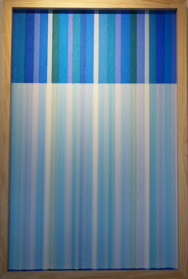 此次展出的作品名称为《地中海2》、《十月》和《四季1》,艺术家试图暗示在现实生活中,我们往往只能看到表面的瞬间,如同大海表面的单一蓝色掩盖了底层极其丰富的色彩,而在季节的交替中,充满了无数的绚烂色彩,我们在当下也只能真切的看到一隅,呼应艺术家一直相信:「我们一般只能看到绘画的最表层,但绘画最精采的是过程,而非结果。」